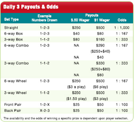 Daily 3 Midday Prizes and Odds
