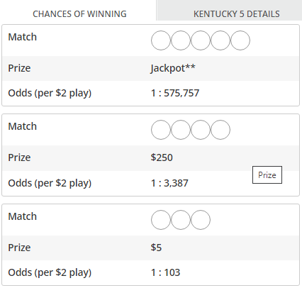 Kentucky 5 Prizes and Odds